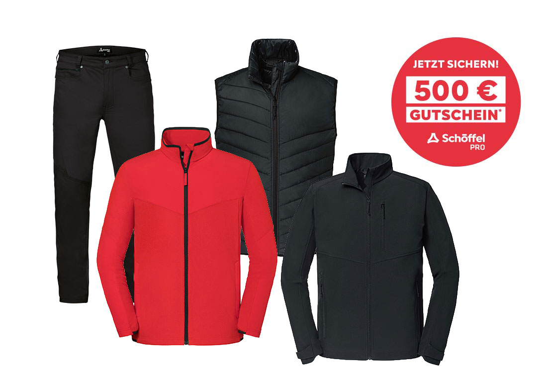 *| Gutscheincode einlösbar im Schöffel PRO Onlineshop. Gutschein kann nicht mit anderen Gutscheincodes kombiniert werden und gilt nicht für alle Artikel in der Kategorie Accessoires. Restwert kann bis zum Ablauf der Gültigkeit unter Verwendung desselben Gutscheincodes mehrfach eingelöst werden. Kein Übertrag, keine Barauszahlung. Die Mindestbestellmenge für individualisierte Artikel liegt bei 10 Stück pro Modell. Individualisierte Artikel sind vom Umtausch ausgeschlossen. Für eine etwaige Versteuerung des Gutscheins ist der Empfänger selbst verantwortlich.